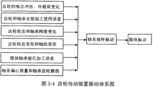 裝有齒輪、軸和軸承的軸系是齒輪傳動裝置的關(guān)鍵部件。在齒輪傳動裝置的工作過程中,箱體與其內(nèi)部的軸系部件構(gòu)成一個振動耦合體系,見圖3-4。軸系部件的振動通過軸承激發(fā)箱體振動,這樣在軸承外圈上安裝套圈并粘貼應(yīng)變片,拾取套圈上的應(yīng)變信號,也就是對齒輪傳動裝置箱體所受的動態(tài)激勵力信號進行測試和分析,就可對齒輪傳動裝置內(nèi)的軸系部件進行故障診斷。這種振動測試故障診斷的方法優(yōu)點是能直接拾取齒輪傳動裝置內(nèi)的軸系部件的振動故障信號,頻響范圍寬,費用低。缺點是需專門制做套圈。