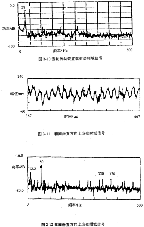 (3)在齒輪傳動(dòng)裝置的軸承外圈套圈上拾取的應(yīng)變信號(hào)能直接全部反映齒輪傳動(dòng)裝置內(nèi)的軸系部件(或稱傳動(dòng)零件)的故障振動(dòng)信號(hào),利用故障診斷特征參數(shù)-傳動(dòng)零件的故障振動(dòng)頻率成份和頻率處的功率對(duì)此信號(hào)進(jìn)行分析,可對(duì)齒輪傳動(dòng)裝置內(nèi)的軸系部件進(jìn)行正確的故障診斷。